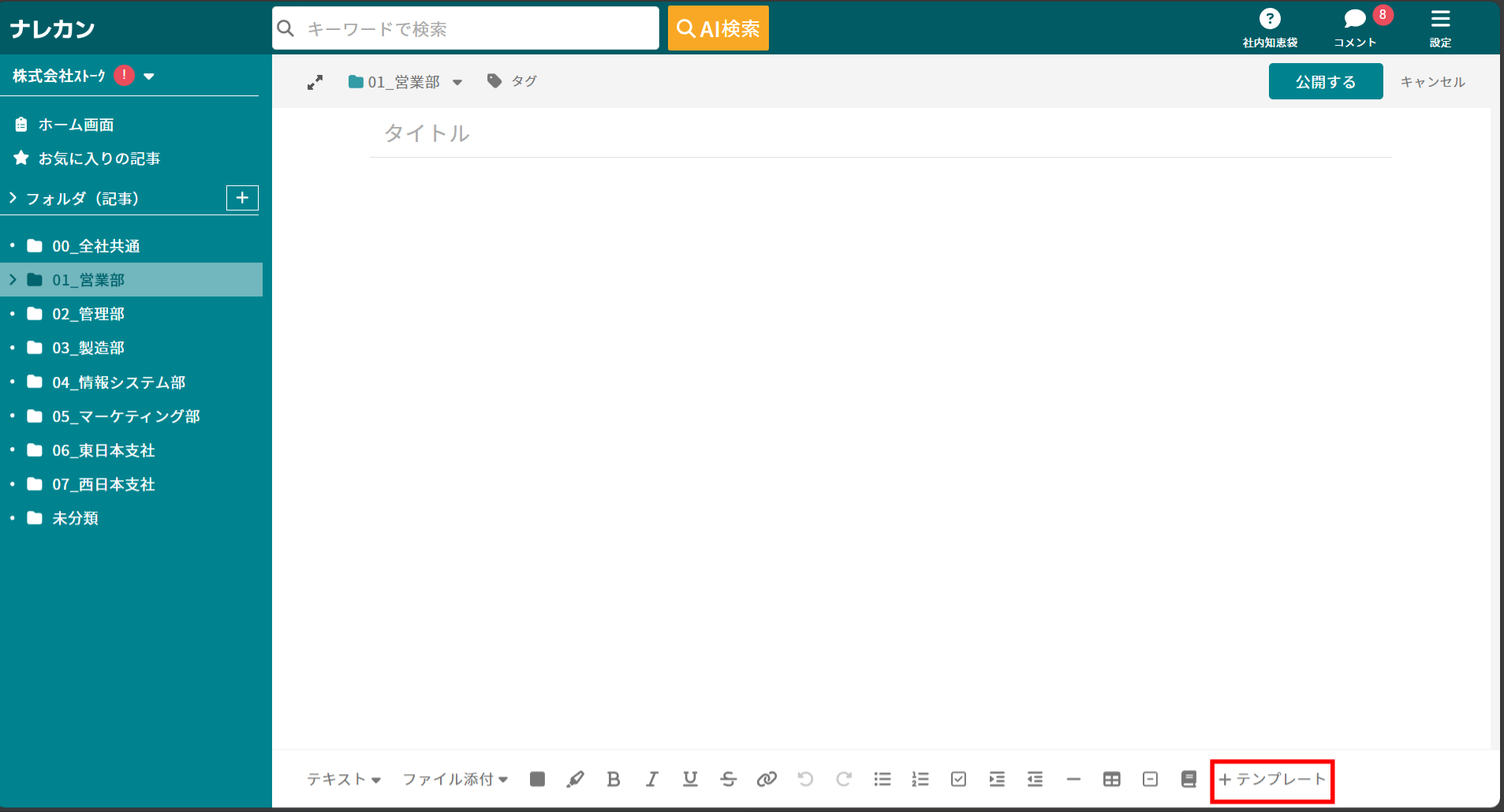 ③記事にテンプレートの内容が挿入されます。