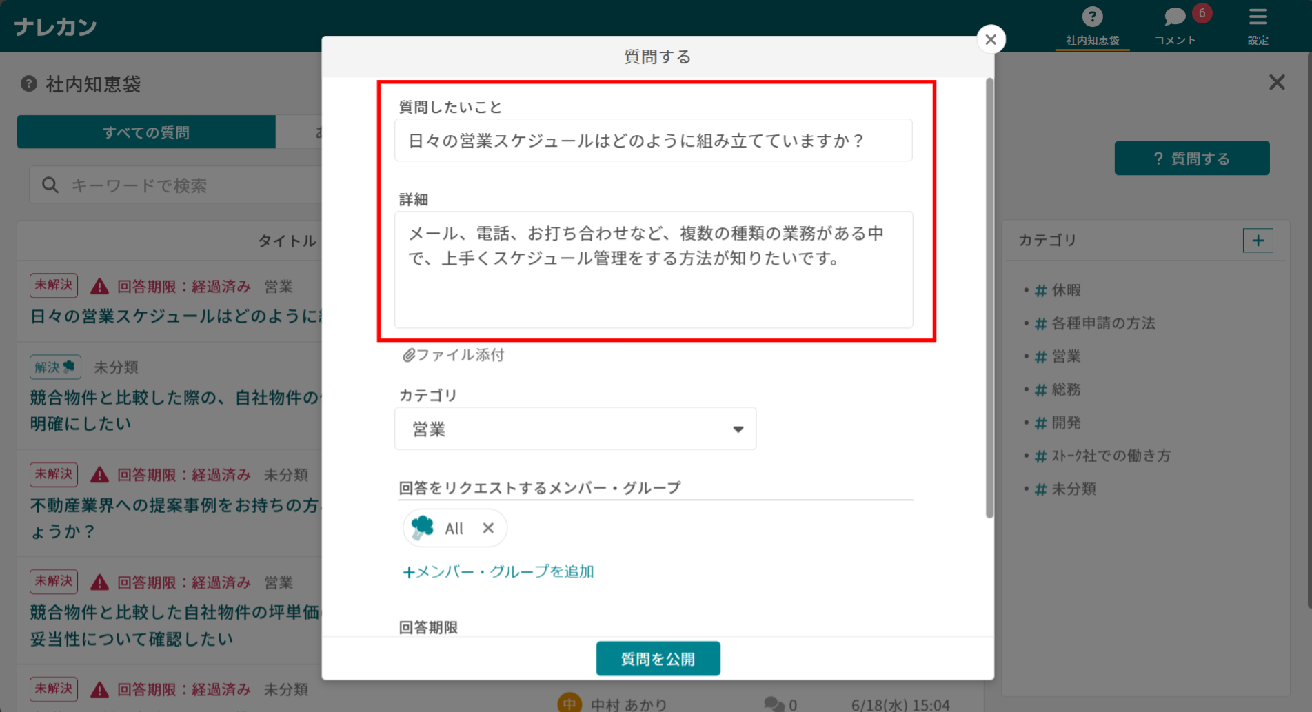 質問の作成方法を教えてください