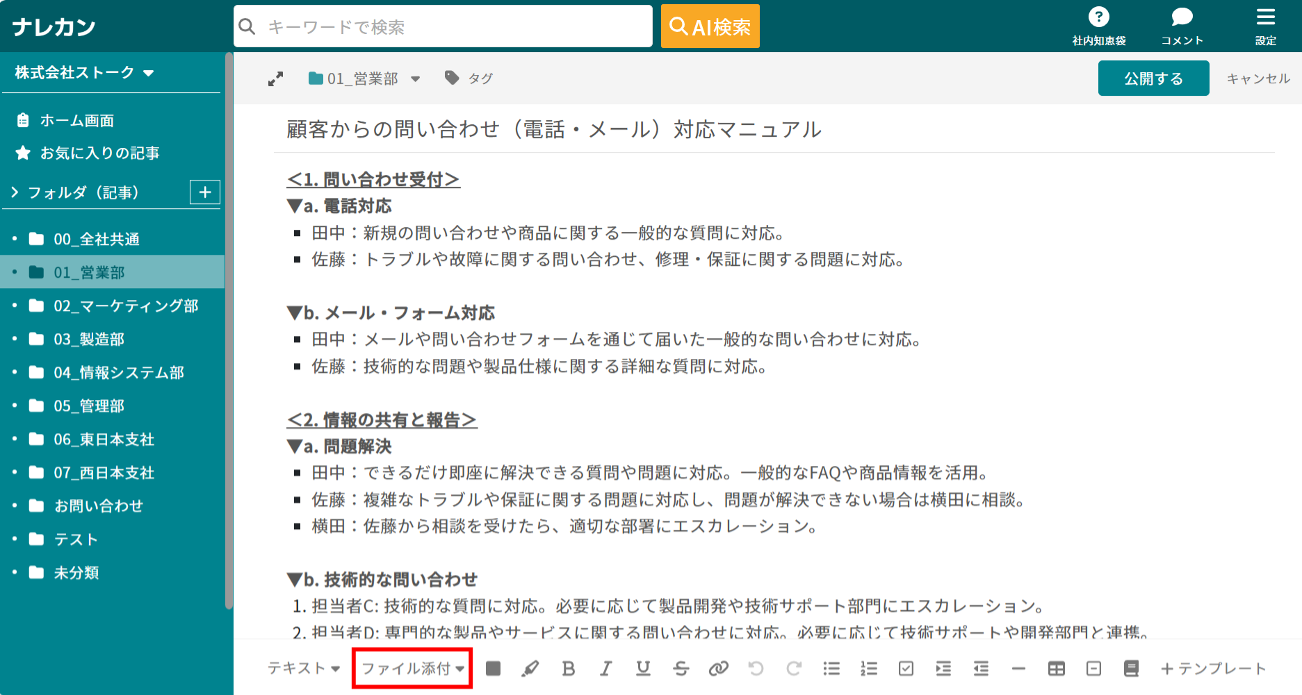 はい、下記の方法で、記事や質問にファイルを添付することができます。